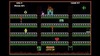 The first version (alpha) has 4 levels, 3 different monsters, 5 prizes to collect, and a bit of sound effects (made by using Audacity and recording me saying "Boing" pretty much...) Using a very nice...